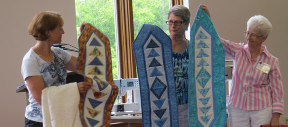 The 2014 Block of the month was presented by the River Queen Bee. Each month a quilting technique was shown in either a placemat, a table runner, or a table topper. The projects were chosen so that they could be easily completed by the next month. Click here to view a slideshow of project photos gathered throughout the year from the classroom and Show and Tell (monthly general meeting). |